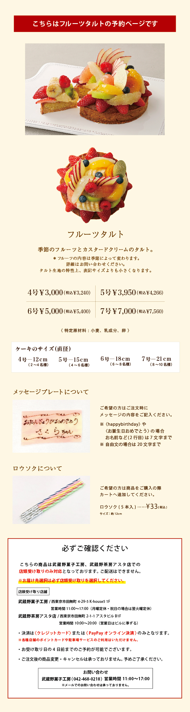 ※季節によりフルーツが変わります。詳細はお問い合わせください(TEL 042-468-0218)